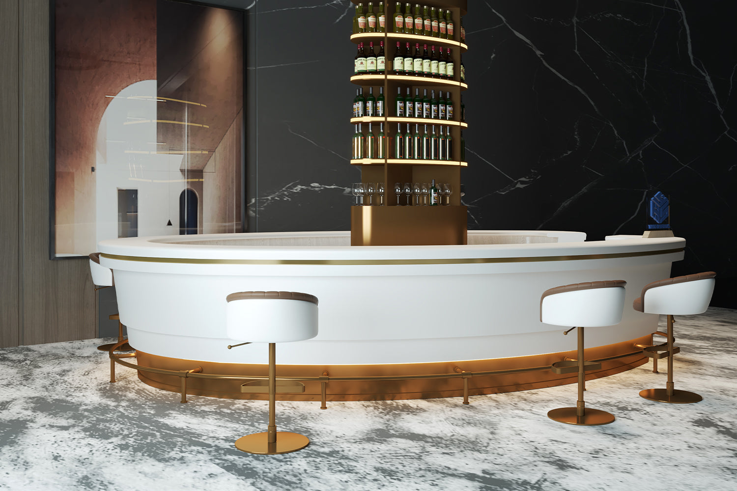 Acrylic solid surface custom bar tops offer a more comfortable and secure, flowing space with unique color layering. Experience a harmonious blend with nature in your bar environment.